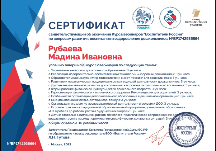 Сертификат Рубаева