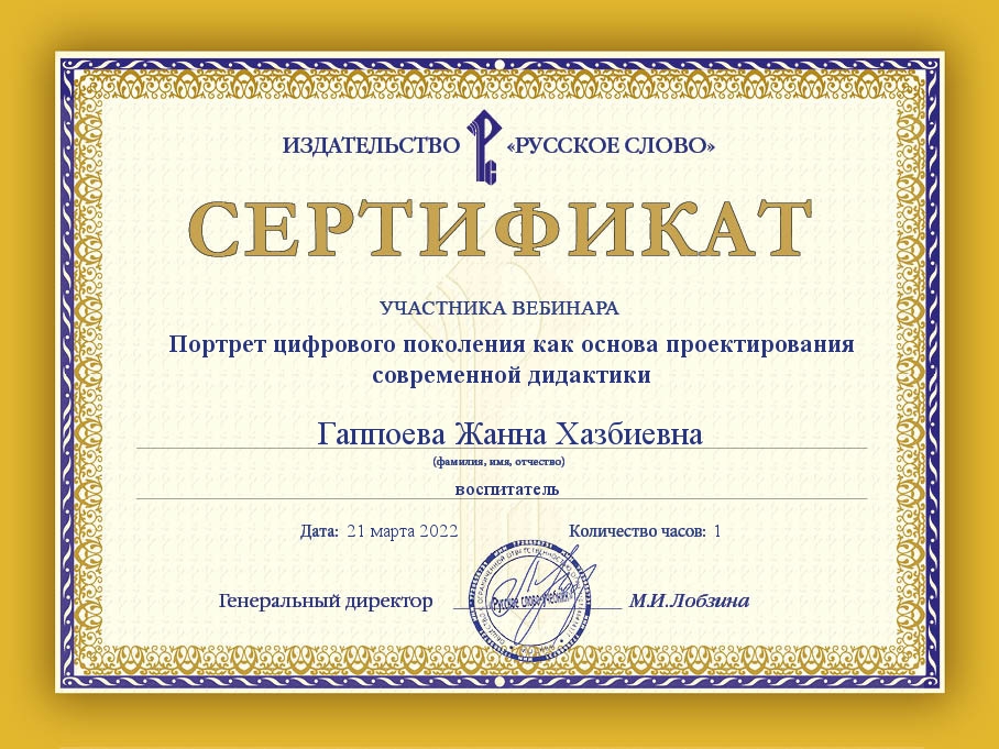 Сертификат Джикгаева